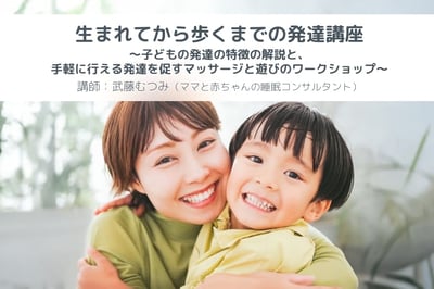 第3回となる今回は、ママと赤ちゃんの睡眠コンサルタントの武藤むつみさんを講師に迎え、「生まれてから歩くまでの発達講座〜子どもの発達の特徴の解説と、手軽に行える発達を促すマッサージと遊びのワークショップ〜」を開催いたします。